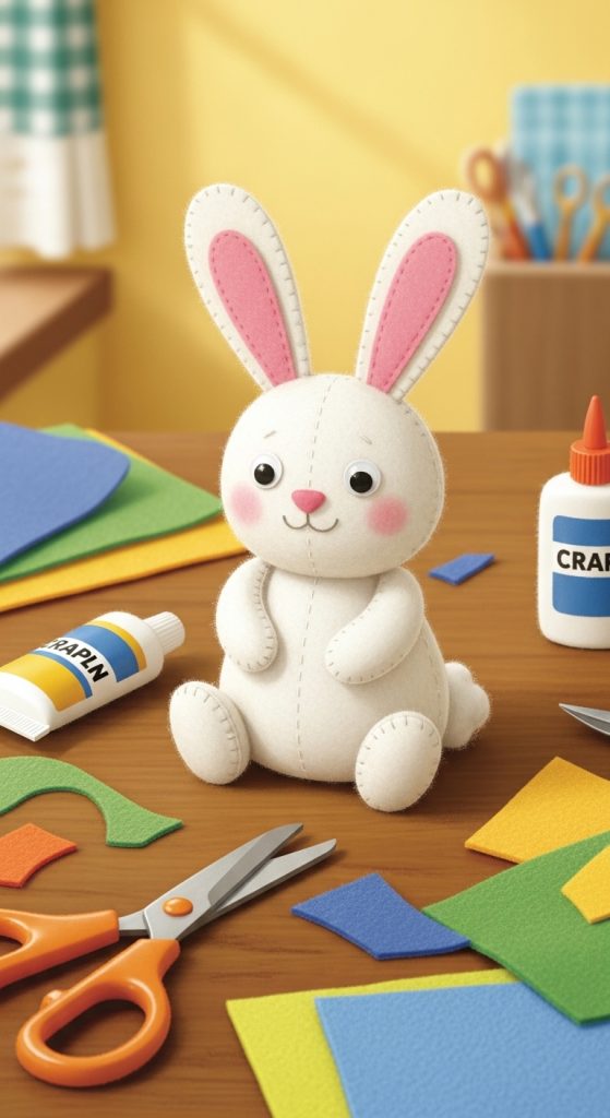 Cut bunny shapes from white felt and smaller pieces from pink felt for ears and nose. Glue the pink pieces onto the white ones. Attach googly eyes and draw a mouth. Add cotton stuffing between felt layers for a soft 3D effect.