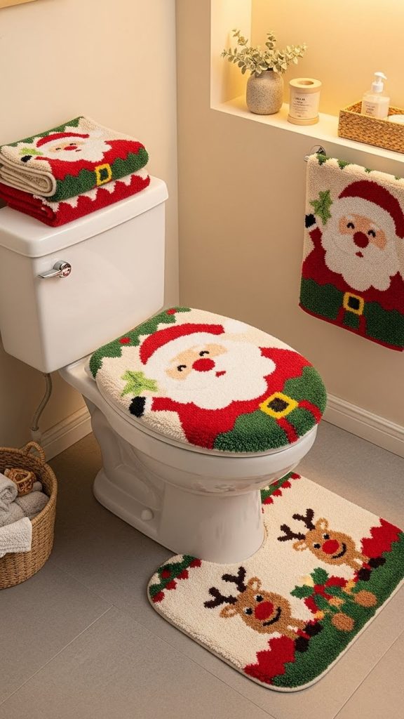 7. Christmas-Themed Toilet Seat Covers and Rugs