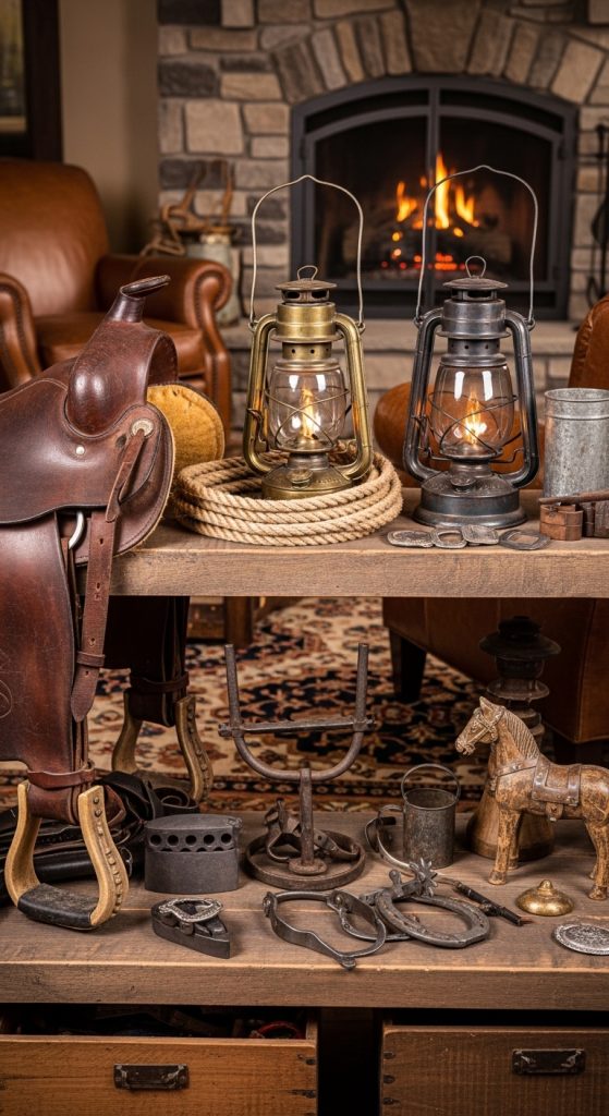 Accessories complete the cowboy decor style. Look for vintage items such as old saddles, lanterns, rope, or antique clocks. Preparation involves cleaning and restoring these pieces carefully before display. Ensure they are safe and stable.