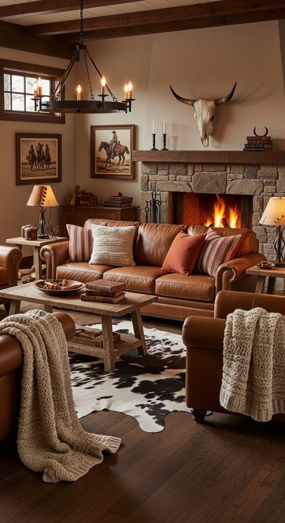Leather seating brings warmth and a sense of tradition to your home. It reflects the hardworking lifestyle of cowboys while still offering modern comfort. This combination makes it a key element in western decor.