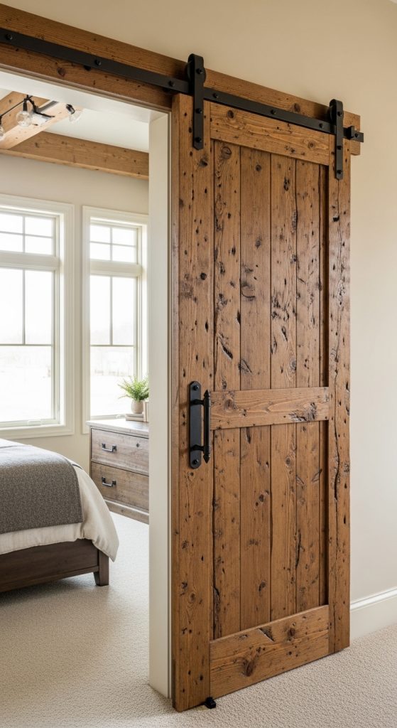 Sliding barn doors are both functional and decorative. They add a strong western character to interiors. Choose solid wood doors with visible grain and iron hardware. Preparation includes measuring the doorway accurately and installing a sturdy sliding track system.