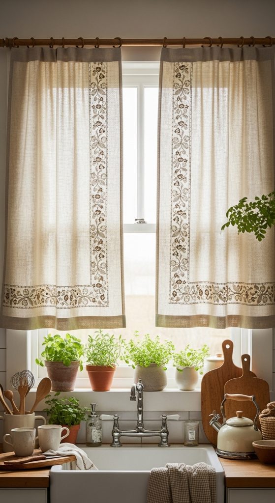 These curtains are a creative way to reuse fabric remnants while adding personality and warmth to your kitchen.