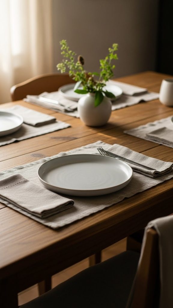 Linen placemats are a practical and stylish addition to dining tables, offering a natural way to protect surfaces while adding warmth to decor. To create these placemats, cut medium weight linen fabric into rectangles, usually about twelve by eighteen inches. Hem the edges by folding them twice and sewing straight seams. If you prefer a rustic look, you can leave the edges raw and gently fray them. Linen placemats can be dyed naturally with tea or coffee to achieve earthy tones, or you can keep the original fabric color for a clean minimalist style. These placemats are easy to wash, durable, and ideal for everyday use. You can embellish them with simple embroidery, hand stamped patterns, or stitched borders. Pairing them with a matching table runner enhances the overall aesthetic and creates a cohesive dining setup. This project requires minimal sewing skills and is budget friendly, especially because multiple placemats can be made from a small amount of fabric. They elevate the dining experience by adding elegance and comfort with the natural texture of linen. Perfect for casual meals, family gatherings, or styled table presentations.