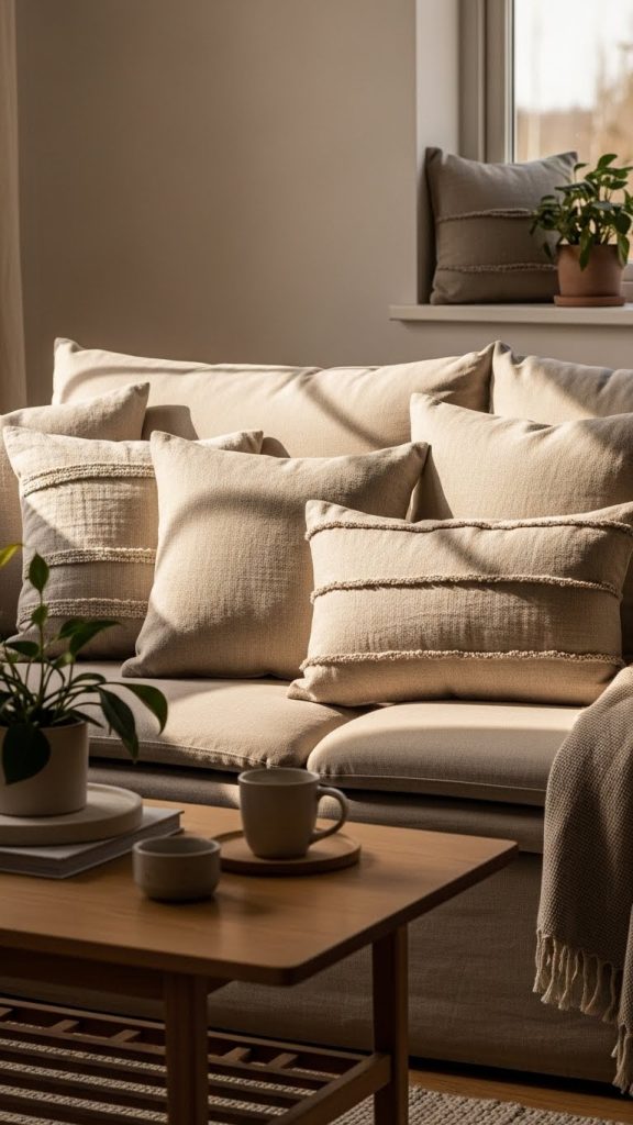 Creating linen throw pillow covers is one of the easiest and most effective ways to introduce the linen aesthetic into your home. To begin this project, select linen fabric in natural shades such as beige, cream, off white, or taupe. Softly textured linen works best, but you can also choose slightly thicker linen for a more structured look. Start by measuring your pillow inserts and cutting the fabric with an allowance for seams. An envelope style cover is ideal because it eliminates the need for zippers and requires minimal sewing skills. Fold the fabric, align the edges, and sew straight seams along the sides. Linen becomes softer with each wash, so pre washing the fabric helps achieve a natural relaxed texture. Once finished, press the seams for a cleaner appearance. These pillow covers add a warm and organic feel to sofas, beds, or reading chairs. Another advantage is the ability to easily change themes by swapping covers for different seasons. This project is cost effective because you can make multiple covers from a few yards of fabric. Handmade linen pillows instantly elevate a room and give it a comfortable lived in atmosphere while maintaining a sophisticated aesthetic.