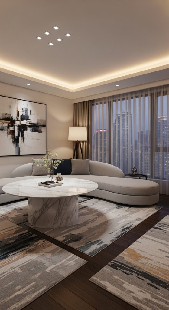 This design works well with sectional sofas or curved seating arrangements. It promotes conversation and balance in the room. If you prefer a harmonious and elegant appearance, a round luxury center table is an excellent choice.