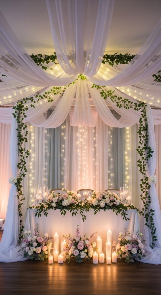 Ceiling and wall drapes transform a plain venue into a sophisticated and intimate space. Preparation requires fabric, hooks, rods, or adhesive, and measurements of the space. Choose materials such as tulle, satin, or chiffon in colors that match the wedding shower theme. Drape fabrics along walls or ceilings, creating soft folds and layers for elegance. Combine with fairy lights, balloons, or greenery for extra texture. Ceiling drapes can define a dance area, highlight the main table, or make high ceilings feel cozier. Ensure fabrics are securely attached to prevent accidents. Drapes can be reused for other events or rented to save costs. Proper installation and coordination with other decorations enhance the overall atmosphere, making the wedding shower feel luxurious, cohesive, and inviting. Draping is a highly effective way to add drama and charm without cluttering the space with too many items.