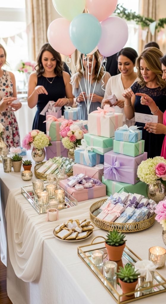 Balloon garlands are a popular decoration for wedding showers because they add color, height, and a sense of fun to the space. They can be used to frame entrances, highlight a gift table, or decorate walls. Preparing balloon garlands requires balloons in different sizes, colors matching the theme, balloon tape or string, and hooks or adhesive for attaching them. To make a garland, inflate balloons to various sizes and attach them to the balloon tape, layering larger balloons at the base and smaller ones on top. Adding metallic or confetti-filled balloons can give extra elegance. Balloon garlands can be customized with flowers, ribbons, or greenery to match a sophisticated or rustic theme. It is important to set up garlands close to the event day to prevent balloons from deflating or popping. If the wedding shower is outdoors, consider using a balloon sealant or helium to ensure balloons stay inflated. Balloon garlands are versatile, eye-catching, and budget-friendly, making them an essential decoration for creating a festive atmosphere while giving the space a professional look without extensive effort.